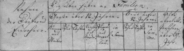 Auch hier sind Stall mit 18 Stück Vieh und Scheune mit 32 Scheffel Getreide sowie Einsaat recht gut gefüllt.